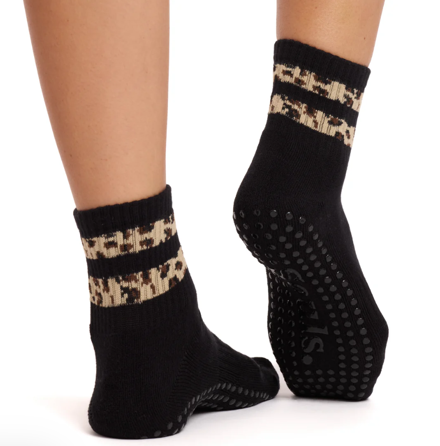 Black Cheetah Grip Socks