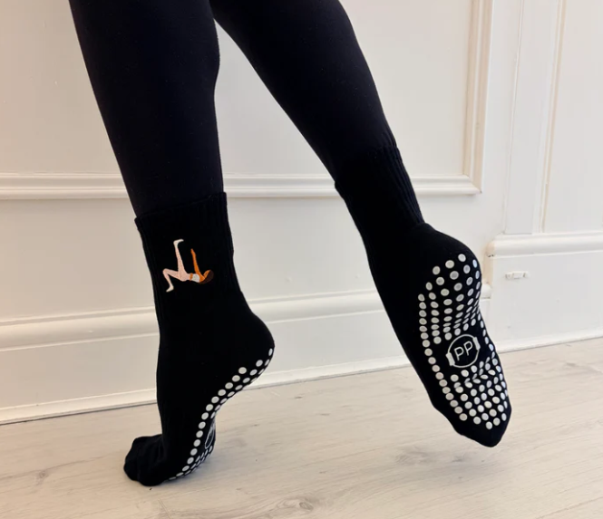Brunette Pilates Girl Grip Sock – Black Crew Sock with Studio Grip
