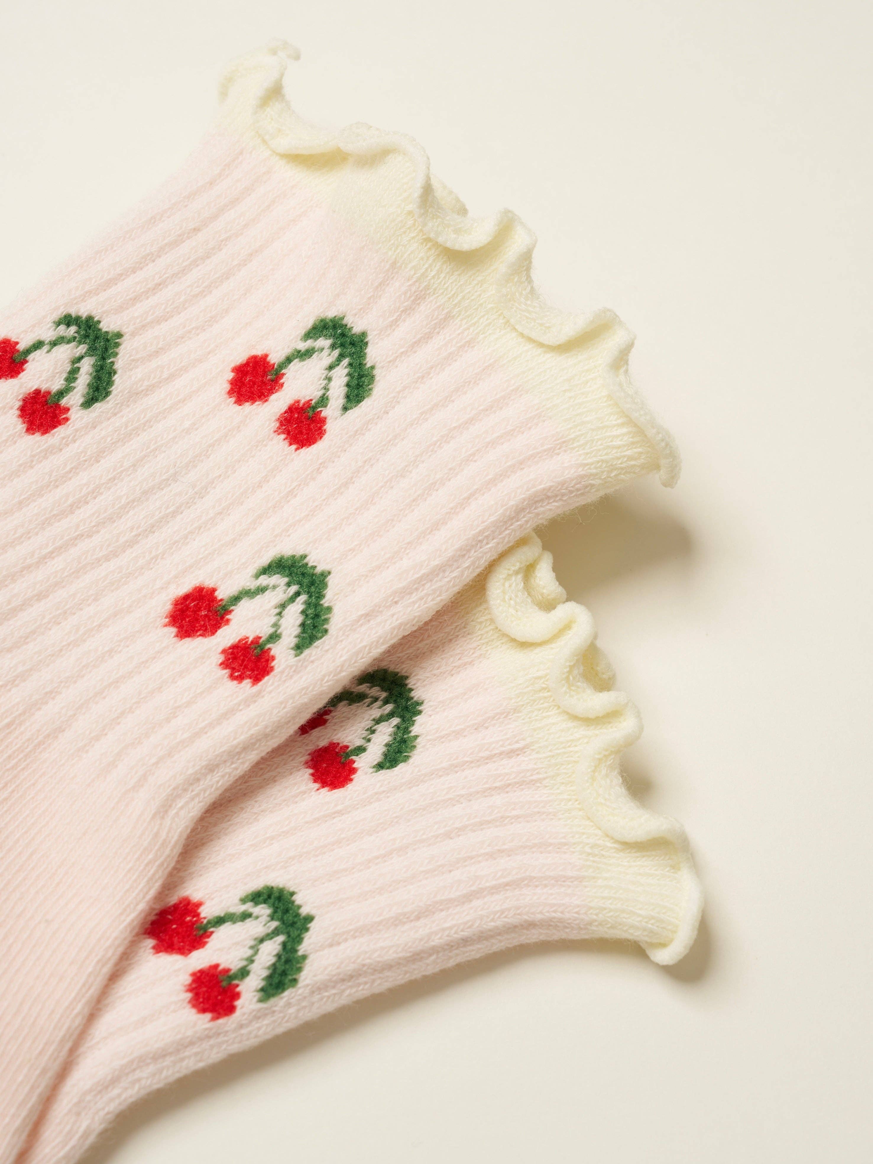 π Cherry Ruffle Grip Sock [Baby Pink]
