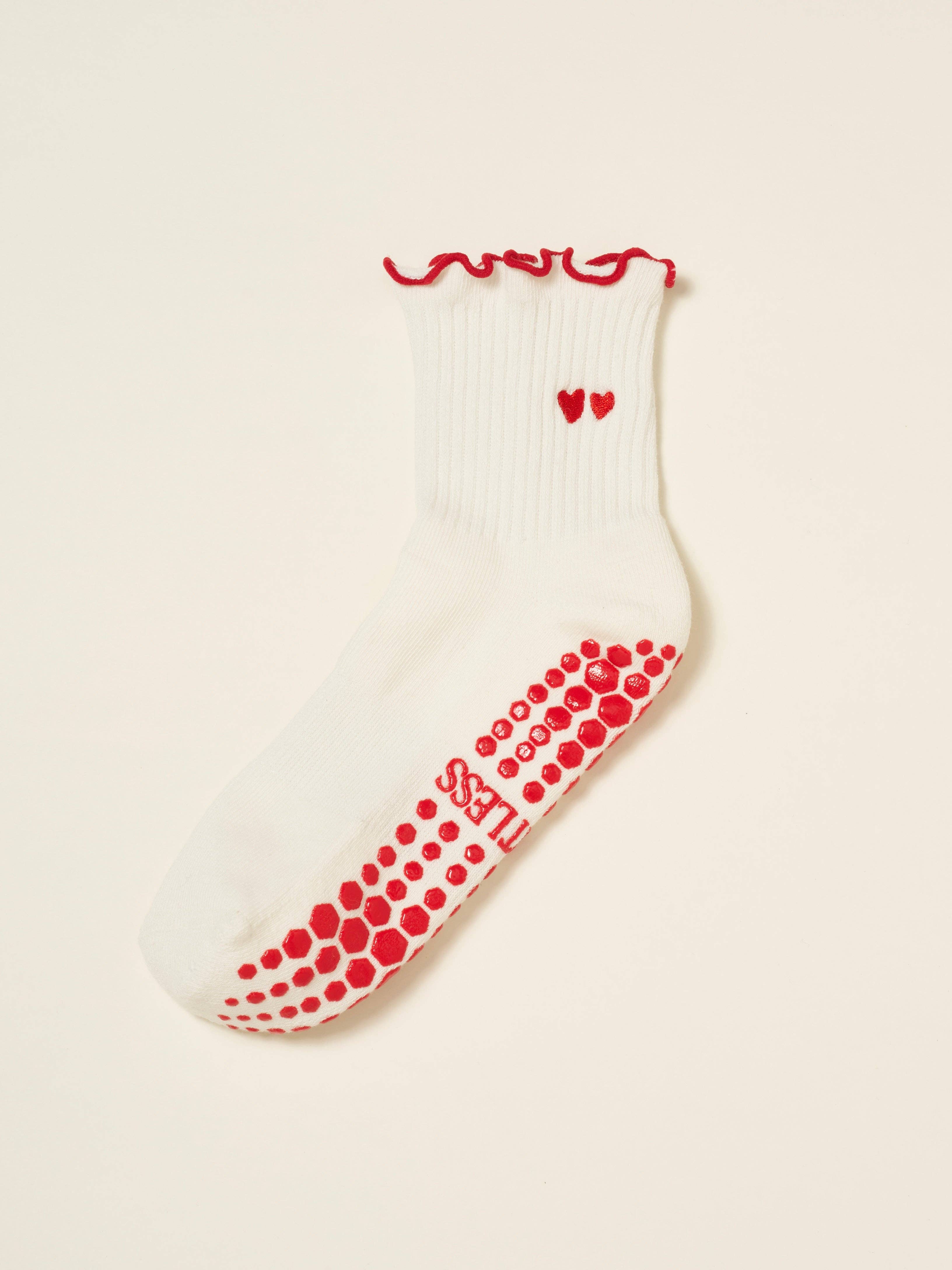 ❤️ Embroidery Heart Duo Ruffle Grip Sock