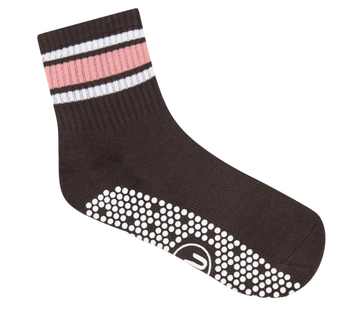 Experience unparalleled comfort and stability with our Crew Non Slip Grip Socks in Heritage Stripe. Designed with your active lifestyle in mind, these socks provide the perfect blend of grip, support, and style. Whether you're practicing Pilates, flowing through yoga, hitting the gym, or simply lounging at home, these grip socks are your ideal companion.Features: