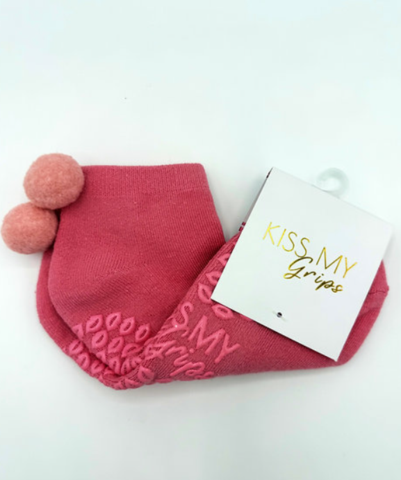 Meet the happiest grips in your drawer. These Sock it to Me Pom Pom Grip Socks from Kiss My Grips deliver studio-grade stability with playful style: a cushy heel pom, smooth low-cut silhouette, and full-coverage kiss-print grips that keep you steady on reformers, mats, and studio floors. The breathable knit stretches comfortably, while a snug collar helps the sock stay put without digging in. Cute enough to wear with sneakers, functional enough for your sweatiest classes—because dependable traction can still be downright adorable.