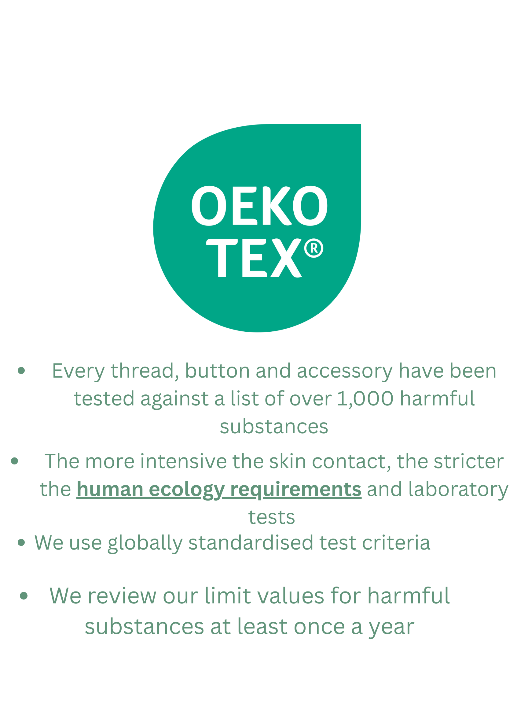 Oeko-tex Certified Non-Toxic Sustainable • One size fit all